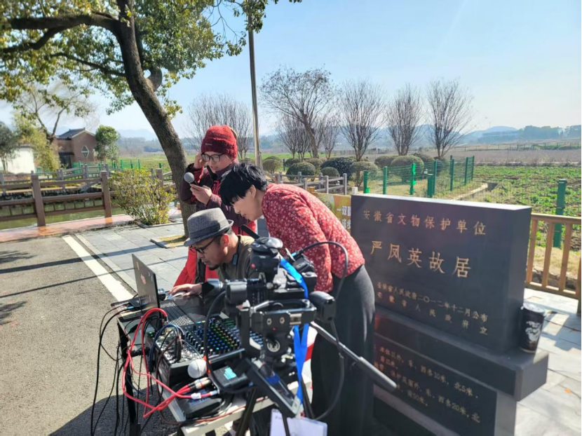 正月初四,在安庆市宜秀区罗岭镇黄梅村,天朗气清,虽春风有裂石劲,却也正合了黄梅戏高腔的激越。严凤英故居前的青石板路上,一个名为“凤英故里唱黄梅”的直播团队如同往常一般架起了设备,开启了马年新春的第一场直播。