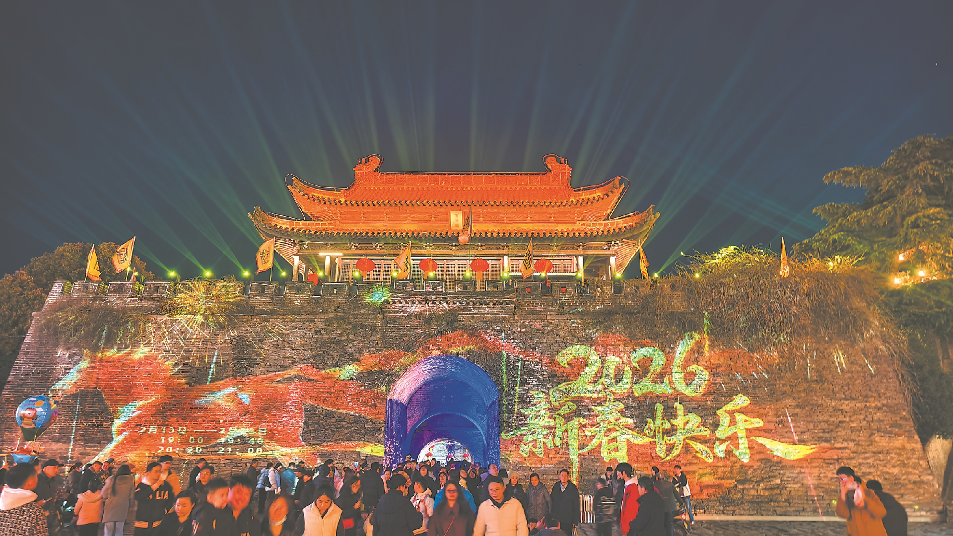 城墙光影秀点亮寿县的新春之夜。 记者 柏松 摄