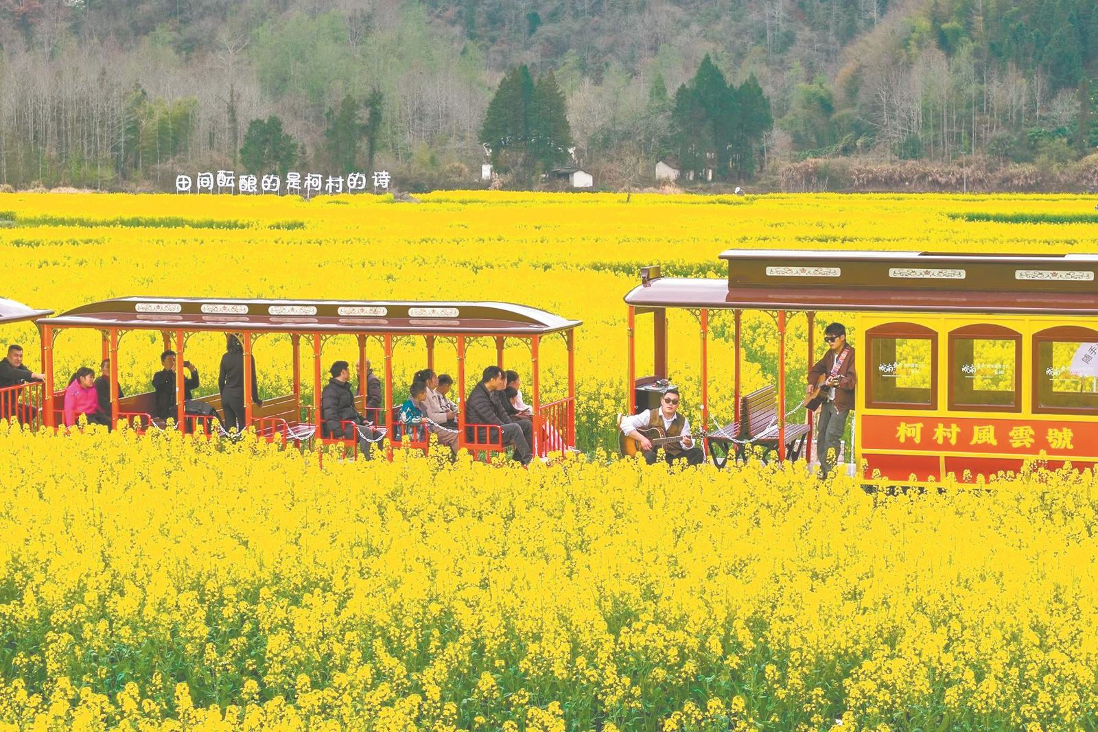 3月21日,黟县柯村镇油菜花盛开,吸引众多游客前来旅游观光,乐享春日田园风光。通讯员 肖本祥 摄