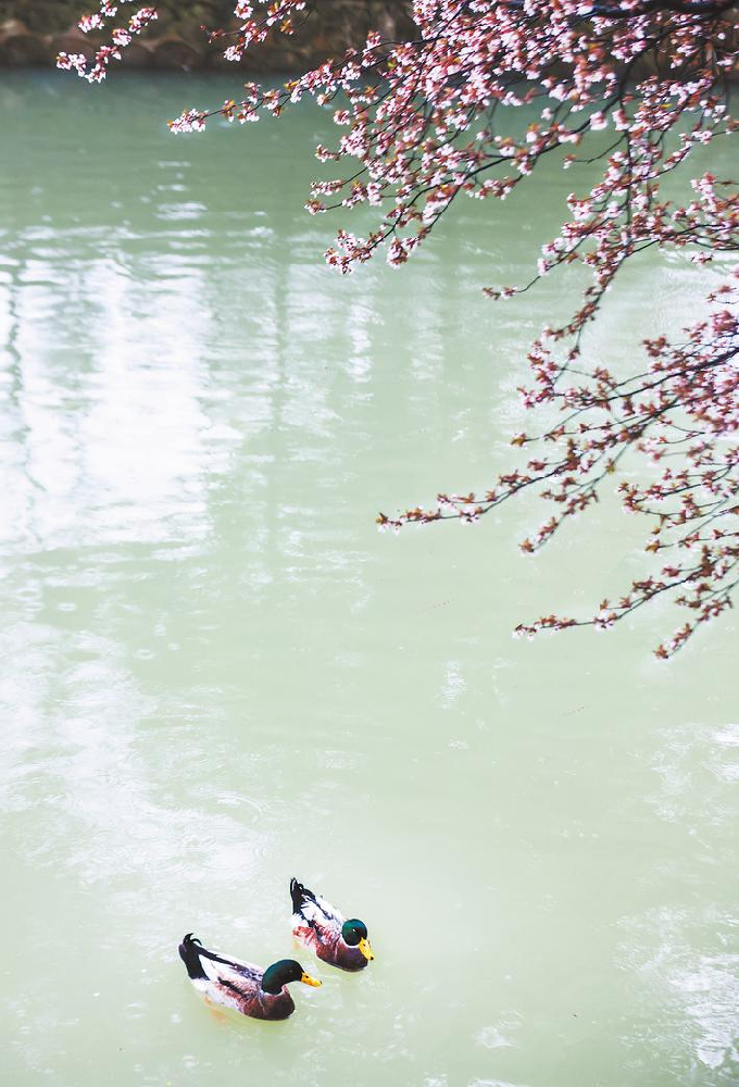 徽园的落花与游鸭。